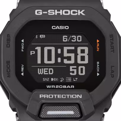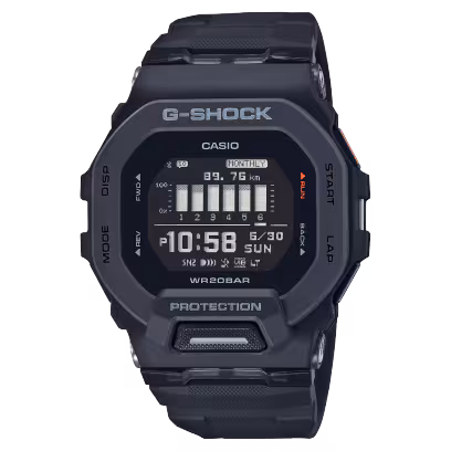Say hello to some serious passion for sports with the G-SQUAD line of G-SHOCK watches. These models feature a square face design in colors chosen to calibrate with the most extreme workouts. Get in on the thinnest G-SQUAD yet. Side slits in the bezel allow the color of the inner case to peek through, highlighting just how slim this watch is. The light button is positioned on the case front for handy access to ensure an easy read during night workouts. Access your smartphone GPS via Bluetooth® for precision accelerometer measurement. All the info you need is at your fingertips — distance, speed, and pace, as well as auto lap readings to keep track of running times for set distances. The display includes calories burned, a step tracker, interval timer, and lap timer to keep your daily exercise on track. Also use the app to check life logs and activity history from your watch. With extra adjustment holes in the soft urethane band for a quality, precision fit, you’re set to enjoy full-on function and complete comfort.